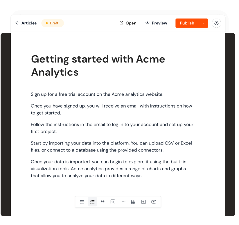 Use our WYSIWYG editor to write SEO optimized articles.